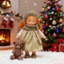 Soft and cuddle doll is made in Knitted style with 100% organic cotton (De witte engel) and stuffed very firmly with natural fiber - clean organic wool Wollknoll.